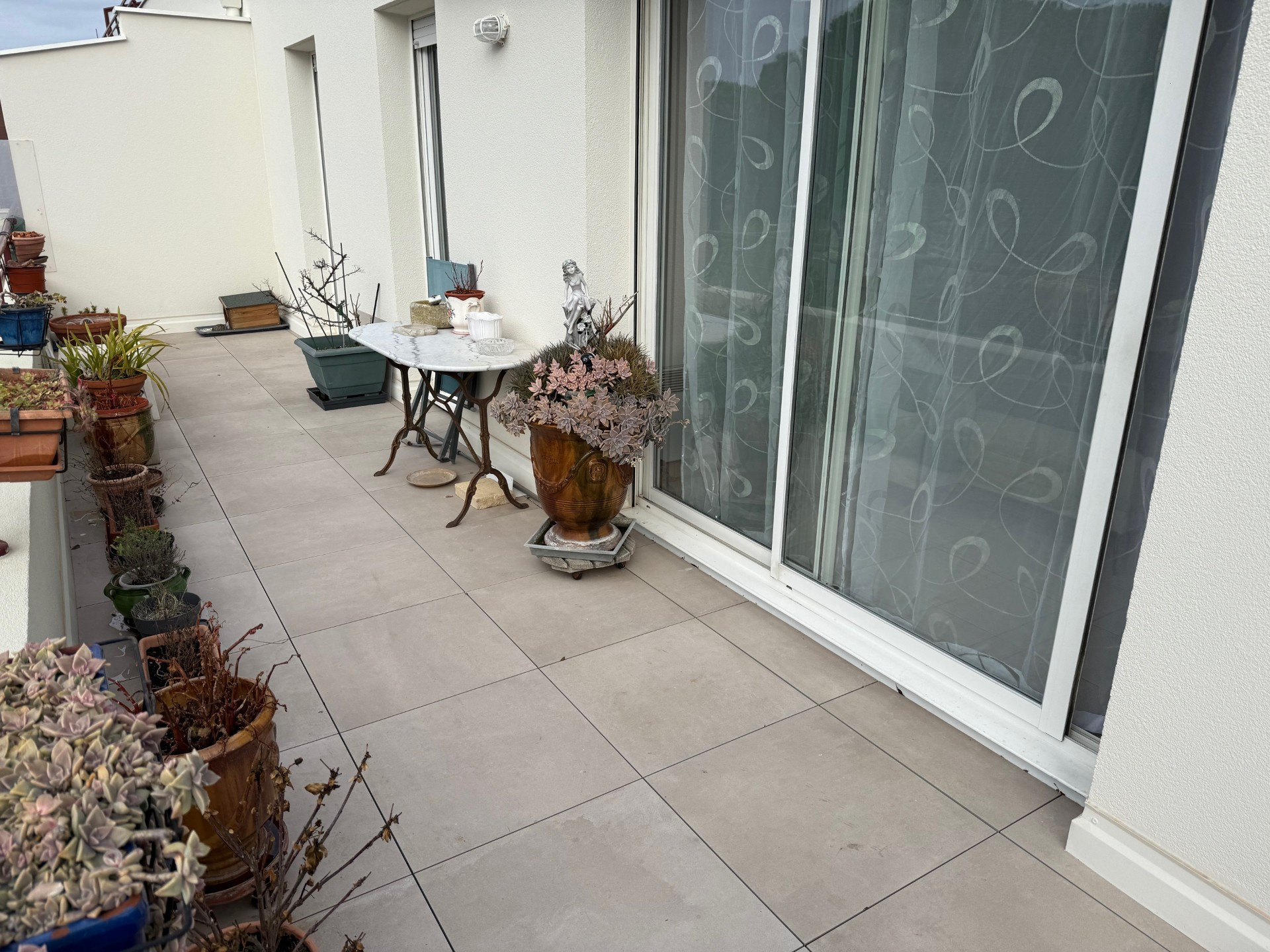 Le séjour et les chambres sont ouverts sur une grande terrasse de 19 m² exposé S/O avec vue dégagée.